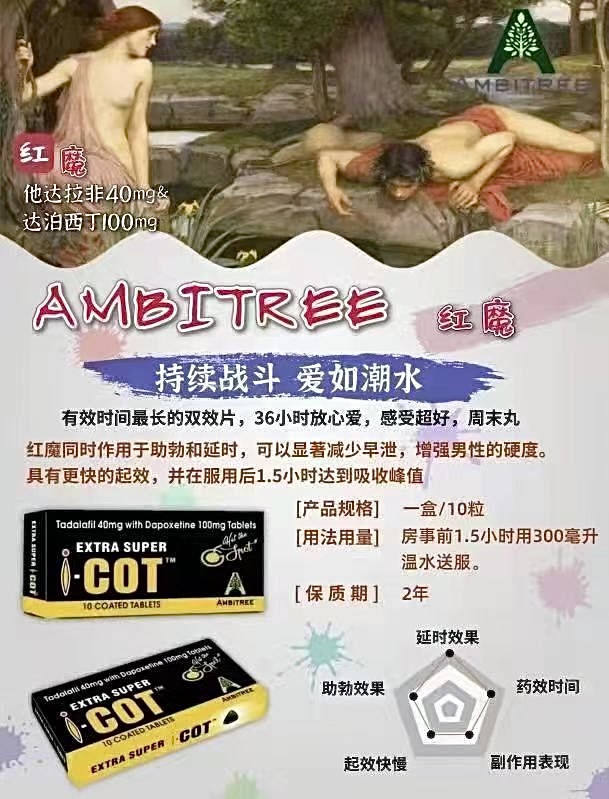 ◾红魔(双效) 由印度安必成药业生产,用于解决男性勃起和早泄的药物,特点持续时间长,理论半衰期36小时,有的甚至3天后还有效果,硬度在平时状态下保持的很美丽随叫随到。也是销量爆款之一 ◾成分:他达那非40mg +达泊西汀100mg ◾效果:助勃增硬+超长延时 ◾特点:延时久 助勃时间长 ◾規格:一盒10粒
