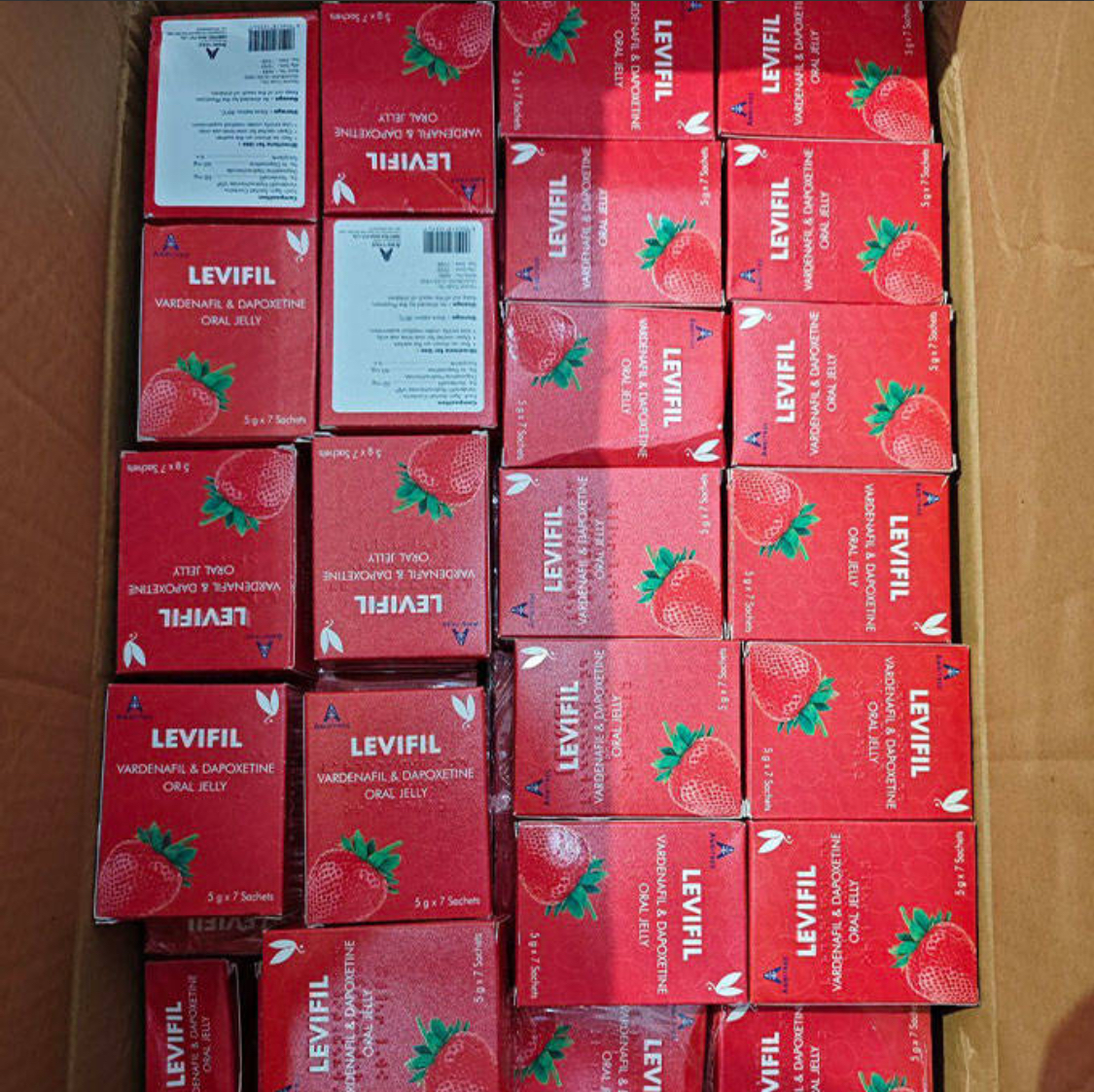 ◾红果冻(双效) 用于解决男性勃起和早泄的药物,液体胶状草莓味果酱,分子结构小容易入口和吸收,且携带方便,服用不尴尬,副作低,适合有硬度基础追求延时的用户 ◾成分:伐地那非20mg+达泊西汀60mg ◾效果:助勃增硬+延时 ◾特点:吸收快 易携带 ◾规格:一盒7包